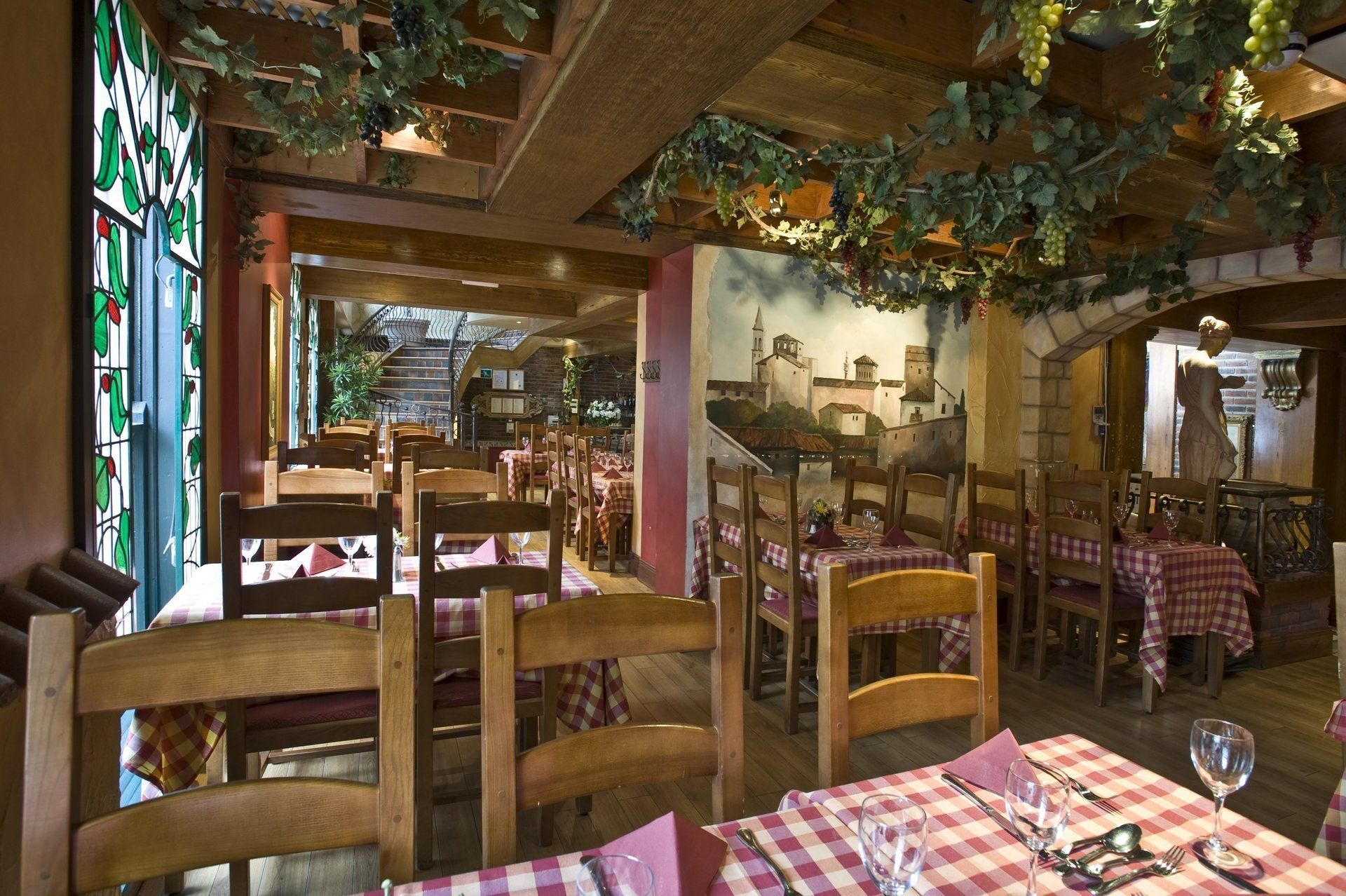 Inside you can enjoy the rustic Italian charm of our interiors; picturesque murals, terracotta tiles, hanging grapevines, the subtle smell of garlic in the air and with Italian speaking waiters amongst our staff, one cannot help but feel transported to La Bella Italia itself!